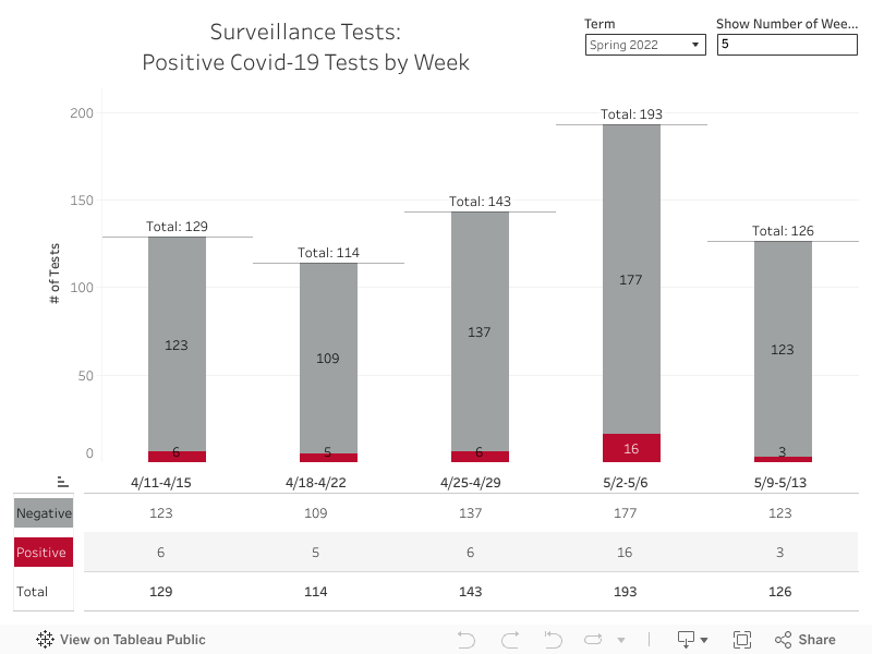 As noted above, all students and employees are required to report positive test results through DawgCheck. Positive tests performed by the VDL and the UHC are routinely reconciled with reports submitted through DawgCheck. Therefore, the surveillance data presented in this section are included in the total number of positive tests presented in the comprehensive DawgCheck information at the top of this report.
